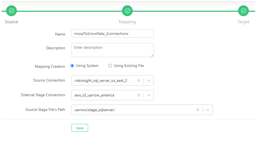 Ability to migrate data from your on premise database to cloud warehouse within 3 steps. Our auto schema mapper requires no knowledge of target table scripts creation. It will take less than 2 minutes to build configuration using our wizard.